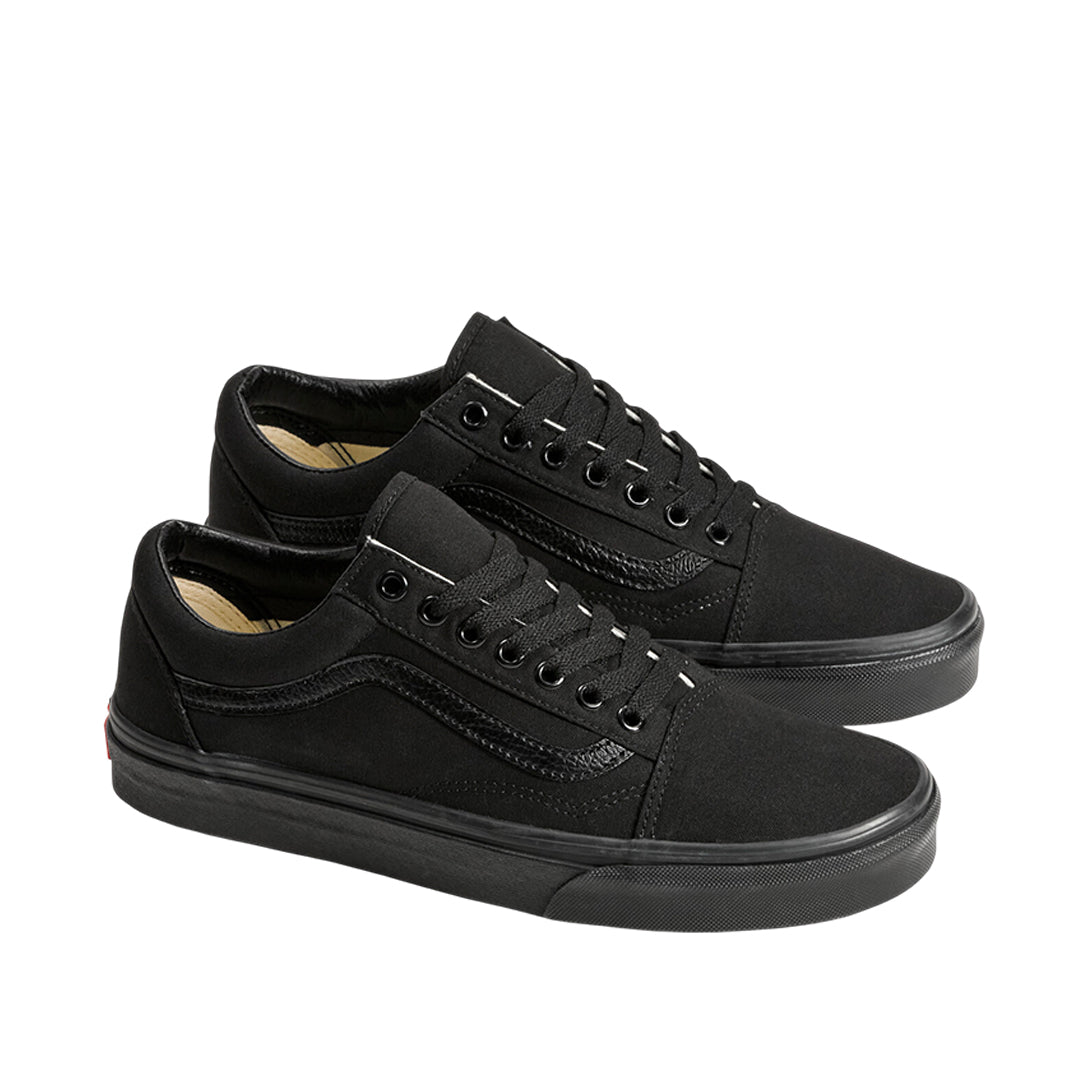 Tennis Old Skool unisex color negro, elaborados en lona y ante. Poseen puntera reforzada, cuello acolchado y suela waffle de caucho. Su diseño clásico ofrece durabilidad y ajuste firme con el característico Sidestripe™.