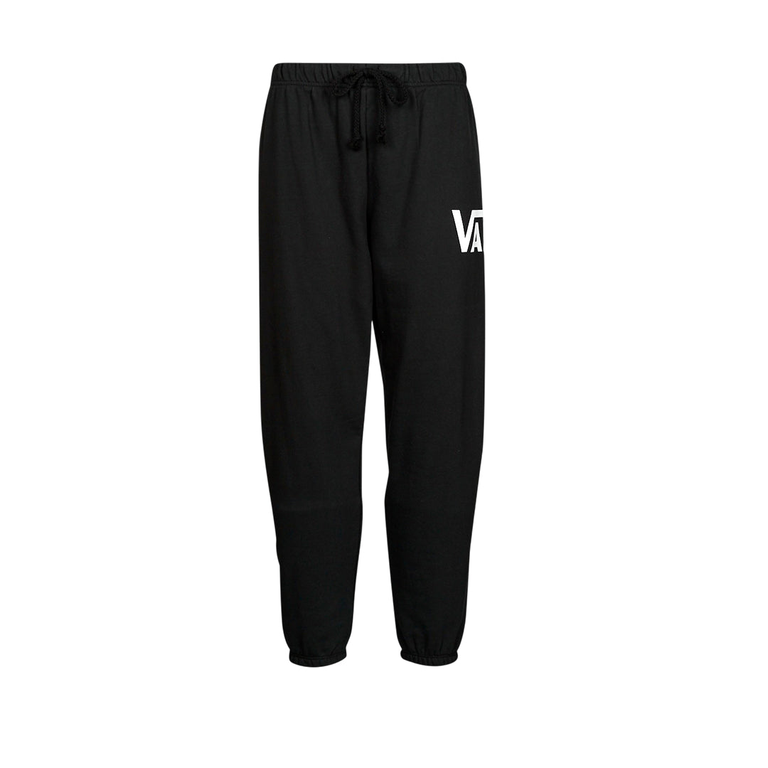 Pantalón Easy Pant mujer negro, mezcla 84% algodón y 16% poliéster. Cintura elástica con cordón y puños en el tobillo. Logo Vans en pierna izquierda.