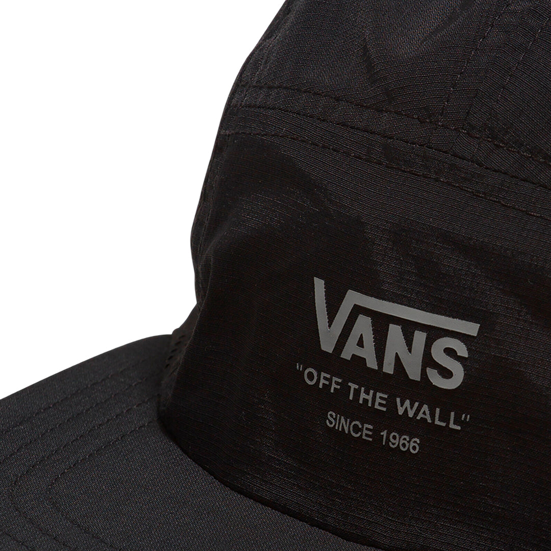 Gorra Camper Out unisex color negro. Tipo 5 paneles fabricada en nylon con paneles perforados y visera flexible. Ideal para uso urbano o outdoor.