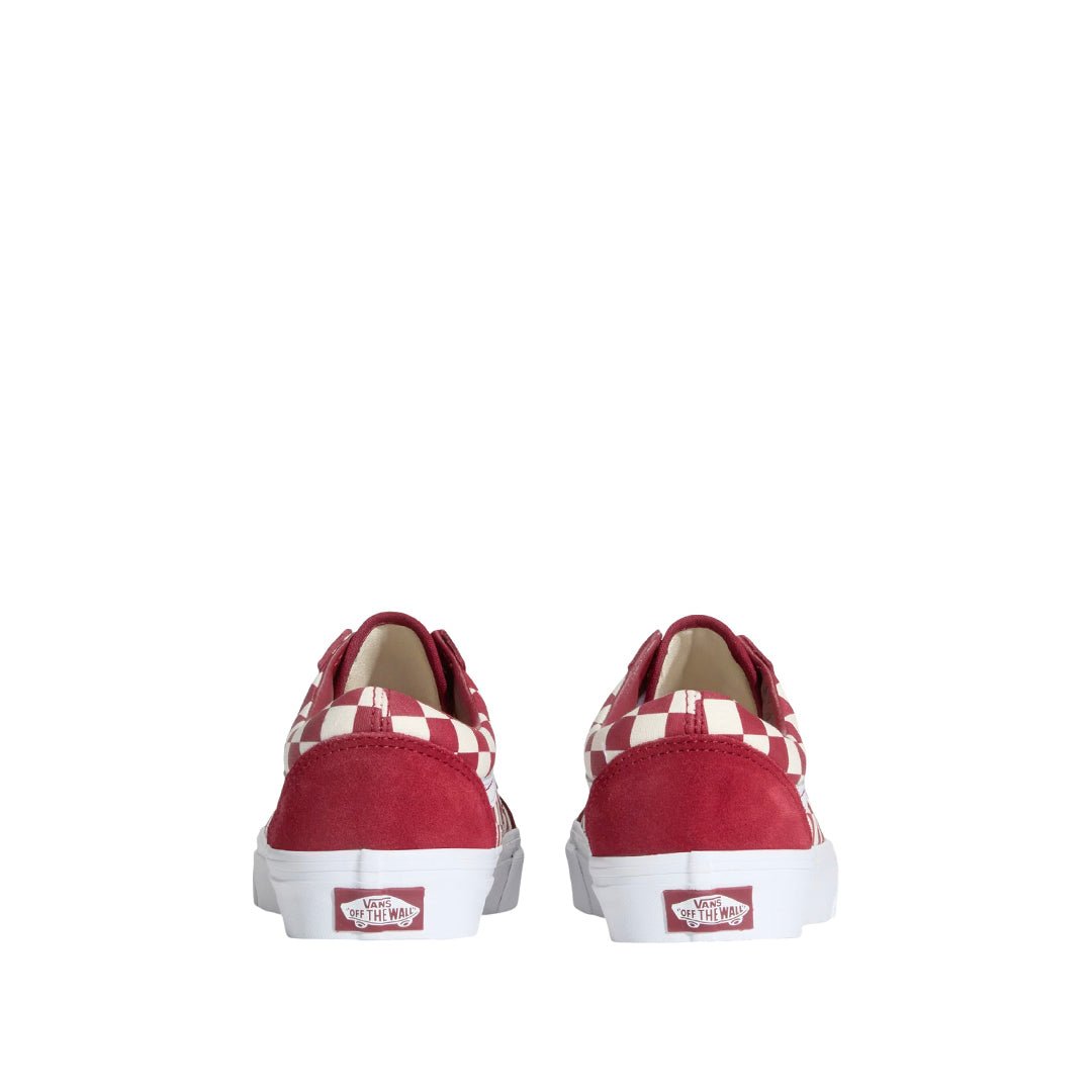Tennis Old Skool unisex color rojo y blanco, marca VANS. Checkerboard con Sidestripe™, cuellos acolchados y cordones. Panel lateral de goma, construcción vulcanizada y suela waffle para agarre superior.